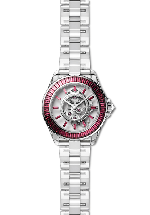 2020년 J12의 탄생 20주년을 기념하기 위해 만든 J12 X-RAY가 2022년 레드 에디션으로 탄생했다. J12의 실루엣에는 변함이 없으나 샤넬의 시그너처 컬러 중 하나인 레드를 강조했다. 크리스털 사파이어 케이스에 바게트 컷 루비 46개를 세팅한 18K 화이트 골드 고정 베젤로 레드 포인트를 주었으며, 바게트 컷 루비 인디케이터를 세팅한 크리스털 사파이어 다이얼이 시선을 사로잡는다. 투명 케이스를 통해 보이는 무브먼트는 오트 오를로제리의 규칙에 따라 브리지와 톱니바퀴로 수놓은 입체적인 레이스 조각의 모습을 하고 있어 보는 재미를 더한다. 12개 한정판.