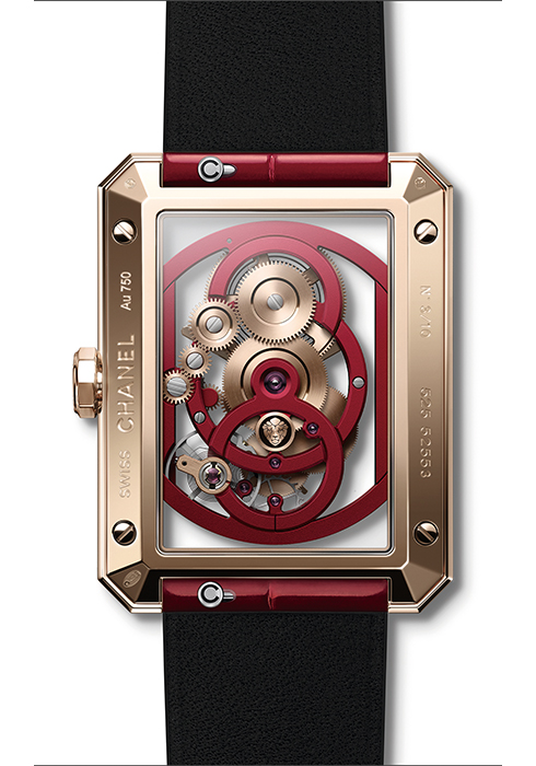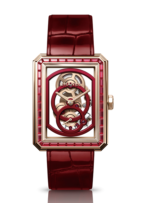 2018년 처음 제작한 보이·프렌드 실루엣에 샤넬의 시그너처 컬러 중 하나인 레드를 부여했다. 레드 엠보싱 레더 스트랩은 2.55 백의 라이닝을 떠오르게 하며 투명 케이스 속 무브먼트의 레드는 파우더 베이지 골드 컬러와 어우러져 궁극의 레드 립 같은 느낌을 준다. 칼리버 3을 탑재해 브리지와 톱니바퀴로 수놓은 입체적인 레이스 조각 같은 형태로 워치 아래로 피부가 살짝 비쳐 보이는 것이 더 매력적이다. 18K 베이지 골드 케이스에 바게트 컷 루비 38개를 세팅한 베젤이 돋보이는 버전과 투명 크리스털 사파이어 케이스와 베젤에 바게트 컷 루비 5개를 세팅한 18K 베이지 골드 크라운이 포인트를 주는 보이·프렌드 스켈레톤 X-RAY 레드 에디션, 두 가지로 출시하며 각 10개, 1백 개 한정판으로 출시한다.