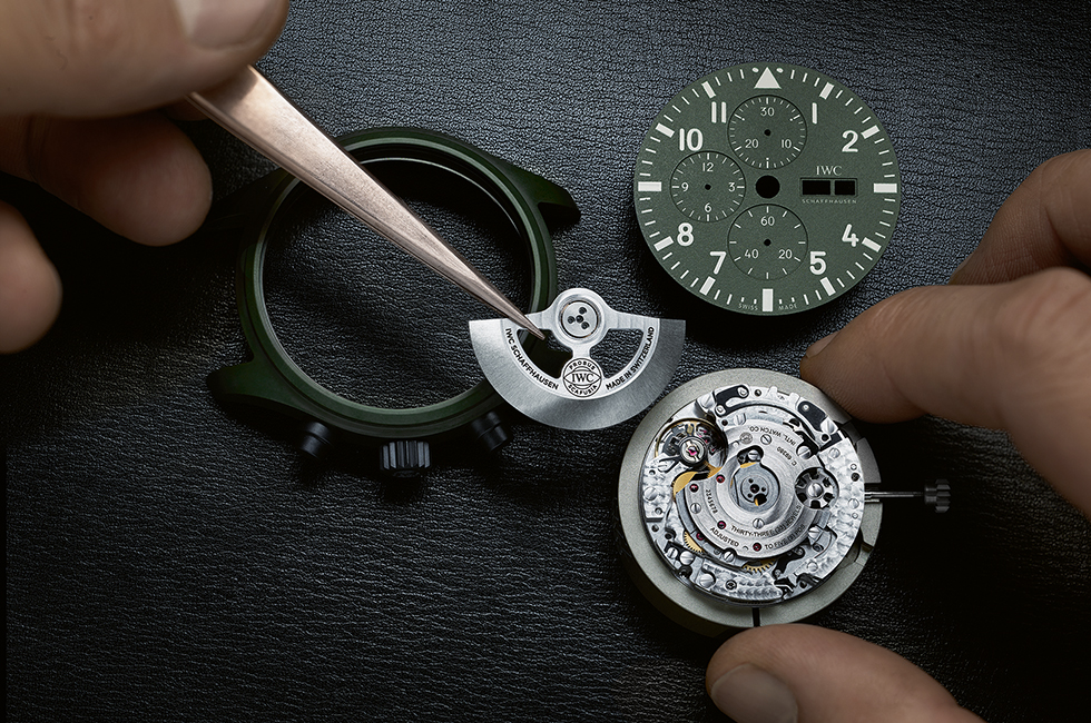 세라믹 시계 제작에 남다른 노하우를 지니고 있는 IWC. 1986년 처음 세라믹 시계를 제작하기 시작한 이후 2019년 샌드 컬러인 모하비 데저트 에디션을 거쳐 올해 세 가지 컬러를 추가했다. 그중 은은한 광택을 내는 짙은 녹색의 ‘우드랜드’ 워치는 파일럿 워치라는 이름에 걸맞게 미국 해군 파일럿의 비행복에서 영감을 받았다. 이 고급스러운 그린은 세라믹 케이스와 다이얼, 스트랩 등에 사용했으며 푸셔 및 케이스 백은 매트 블랙 세라타늄을 적용해 내구성을 강화했고 숫자 및 아워 마커는 더 밝은 색채로 완성해 가독성을 높였다. 칼럼 휠 방식으로 우수한 견고성과 신뢰성을 보장하는 크로노그래프 무브먼트인 IWC 자체 제작 69380 칼리버로 구동하며 자기장의 영향으로부터 무브먼트를 보호하기 위한 연철 내부 케이스를 장착했다. 케이스 백에 아이코닉한 탑건 로고가 매력적이다. 전 세계 연간 1천 개 한정 수량으로 생산한다.