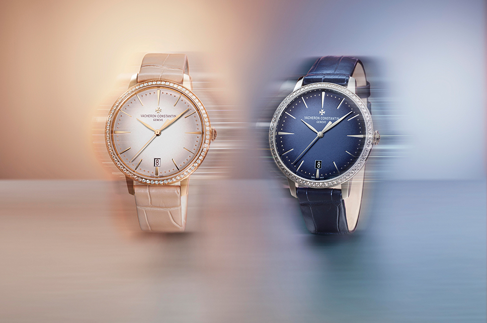 하이 퀄리티를 지향하는 워치메이킹 기술력에 클래식한 우아함을 한 스푼 더한 바쉐론 콘스탄틴의 반가운 여성 워치 컬렉션. 인하우스 칼리버 1120 QP로 구동하는 이 제품은 퍼페추얼 캘린더와 문페이즈 기능까지 갖추었을 뿐 아니라 직경 36.5mm에 두께 8.43mm 케이스로 하이 컴플리케이션을 갖춘 여성 워치 중에서도 가장 얇고 웨어러블한 착용감을 선사한다. 18K 핑크 골드와 화이트 골드로 제작한 두 가지 버전의 케이스에 17개의 라운드 컷 다이아몬드로 장식한 베젤은 우아함을 극대화하며 특히 화이트 골드 케이스 버전에 블루 그레이 컬러를 입힌 머더오브펄 다이얼은 신비스러운 매력을 부가한다. 최초로 별도의 도구 없이 푸시 버튼을 터치하는 것으로만 교체 가능한 스트랩을 장착해 편리함을 추가했으며, 사파이어 케이스 백을 통해 고귀한 워치메이킹 기술을 엿볼 수 있다.