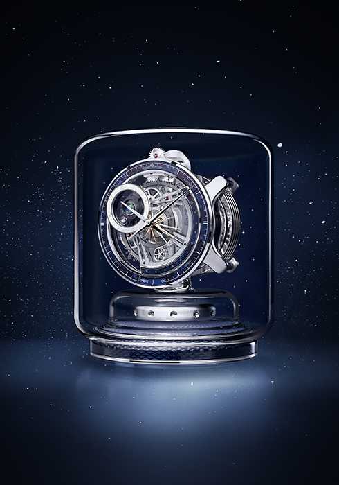 직경 215mm, 높이 253mm의 실린더형 글라스 캐비닛 형태의 애트모스 시계로, 4년 이상의 연구 개발 기간이 소요된 가장 정교한 워치다. 애트모스 전담 공방인 애트모스 아틀리에에서 제작했으며, 지구와 태양, 달의 주기를 최대한 실제에 가깝게 재현하도록 구상했다. 축을 중심으로 자전하는 지구를 정교하게 표현하고 지구 주위를 공전하는 달, 그리고 태양 주위를 공전하는 지구의 궤도를 결합했으며, 조디악 캘린더에 맞춰 각 달과 계절을 표시한다. 2개의 층을 이루는 페리페럴 링으로 구성된 워치의 페이스에는 아워 & 미닛 트랙과 계절의 명칭으로 장식했으며, 프레임 안에 레이저로 별자리를 각인한 투명 블루 사파이어 크리스털 디스크가 자리 잡고 있다. 다이얼 중앙에는 태양을 상징하는 폴리싱 처리한 골드 메탈 선레이 패턴을 새겼다.
