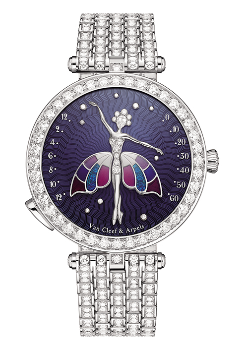 2013년에 탄생해 제네바 시계 그랑프리에서 여성용 컴플리케이션 워치 부문을 수상한 메종 대표 워치. 올해는 화이트 골드와 로즈 골드, 두 가지 버전으로 선보이며, 우아함과 현대적인 감성을 동시에 담아냈다. 지름 40mm 사이즈의 화이트 골드 케이스에 다이아몬드 파베 스트랩을 매치한 버전과 로즈 골드 케이스에 샤이니 퍼플 앨리게이터 스트랩을 매치한 버전으로 선보인다. 베젤은 모두 다이아몬드로 장식했으며 다이얼 한가운데 자리한 발레리나의 얼굴과 헤어, 옷에도 다이아몬드를 배치해 반짝임을 더했다. 다양한 소재와 컬러로 만든 발레리나의 튀튀는 접혔다 펼쳐지며 예술적 감성과 재미 요소를 선사한다.