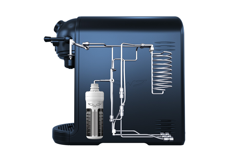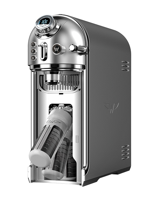 콤팩트한 사이즈, 미래 지향적인 디자인으로 주방 인테리어에 활기를 불어넣는 것 또한 장점이다. 하이퍼카 디테일을 접목한 트렌디한 감성의 ‘W냉온정수기 브레인’은 이정현 스페셜 에디션 세 가지 버전을 출시한 데 이어, 최근 새롭게 진화한 ‘W냉온정수기 브레인 코어’까지 선보인다. 크림 화이트 컬러에 로즈 골드 포인트를 더해 세련되고 우아한 감성을 강조한 신제품은 전면 조작부의 변화가 눈에 띈다. 온도를 조절하는 다이얼 디스플레이에 냉수, 정수, 분유, 녹차, 커피 표기로 보다 세밀한 온수 온도를 선택할 수 있도록 했고, 출수량(125ml, 550ml, 1L) 조절 버튼은 기존 레버 대신 터치 버튼 방식을 적용해 쉽고 편리하게 사용 가능하다.