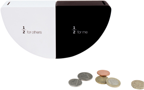 한국관에서 많은 이들의 눈길을 사로잡은 것은 심미성이나 실용성에 초점을 맞춘 디자인보다는 환경과 사회문제를 생각하는 고민과 배려의 흔적이 엿보이면서도 디자인 측면에선 군더더기 없이 승화된 작품들이었다. 차세대 디자인 리더 박지원은 일상에서 기부를 실천하자는 메시지를 담은 ‘1/2 저금통’을 선보여 호평을 받았다. 반원형의 이 저금통은 검정과 하양으로 색의 대비를 이루는 두 칸으로 균등하게 나눠져 있는데 하나는 ‘나를 위한 저금’, 다른 하나는 ‘타인(어려운 이웃)을 위한 저금’을 뜻한다. 2개가 균형을 이루지 않으면 시소처럼 한쪽으로 기울어지도록 고안됐기 때문에, 이 저금통을 예쁘게 바로 세우려면 나를 위해 저축한 만큼 남에게도 베풀어야 한다.