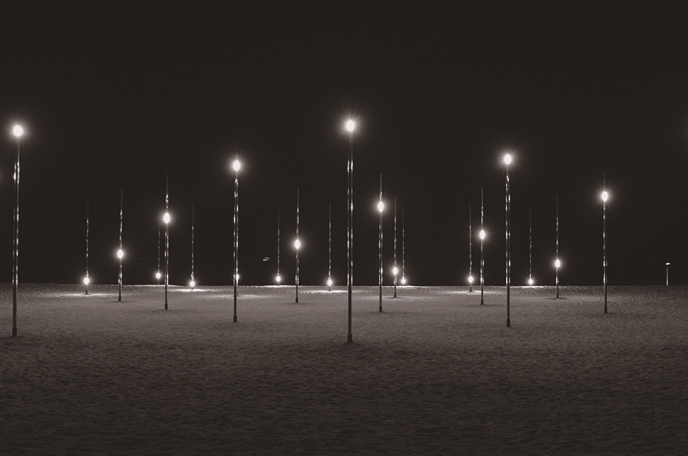 이 설치물의 기초가 되는 재료는 ‘빛과 시간’이라는 환경입니다. 해변은 작품의 뼈대가 되고, 저녁 내내 변화하는 빛과 바다와 모래의 모습이 무한한 그림자를 만들어내며 보는 사람들을 시시각각 다른 환경으로 이끌죠. 순환과 변화를 만드는 주체인 동시에 한편으론 객관적으로 즐기는 전지적 시점을 갖게 되는 것이죠.