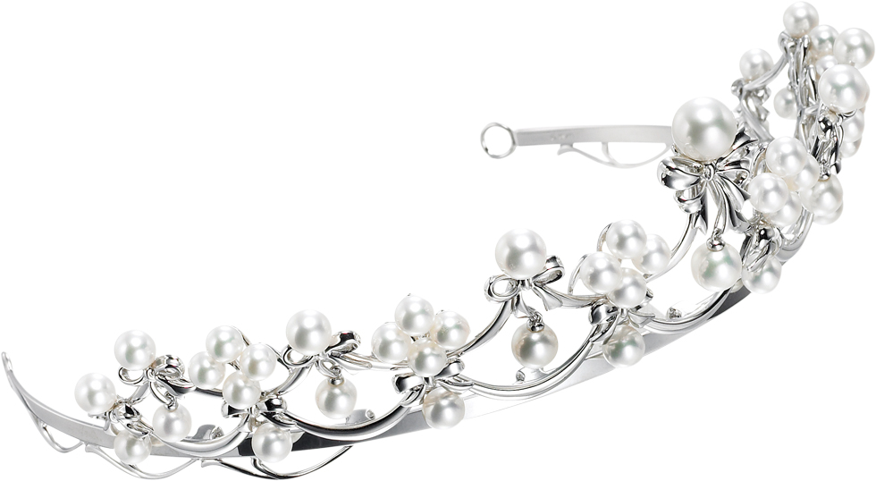 웨딩드레스가 화려하므로 결혼식날 주얼리를 선택할 때는 화사하게 빛나는 티아라와 심플한 이어링에 포커스를 주는 것이 좋다. 티아라 가격 미정  타사키, 이어링 가격 미정  샤넬. 문의 타사키 02-3461-5558 샤넬 080-332-2700