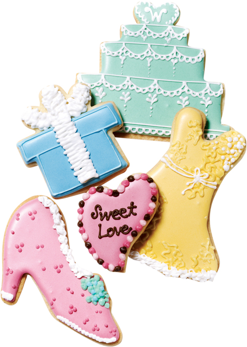 알록달록 아이싱 크림을 입힌 쿠키를 답례품으로 준비한다면 보는 것만으로도 기분이 즐거워질 것이다. 웨딩드레스와 선물 상자, 웨딩 슈즈 등 컬러풀한 아이싱 쿠키는 메리데이. 문의 02-517-1057
