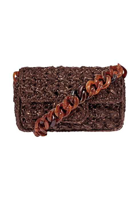 벌키한 크로셰 짜임과 볼드한 체인으로 유니크한 무드를 풍기는 크로셰 숄더백 28만5천원 카테리나 베르티니.