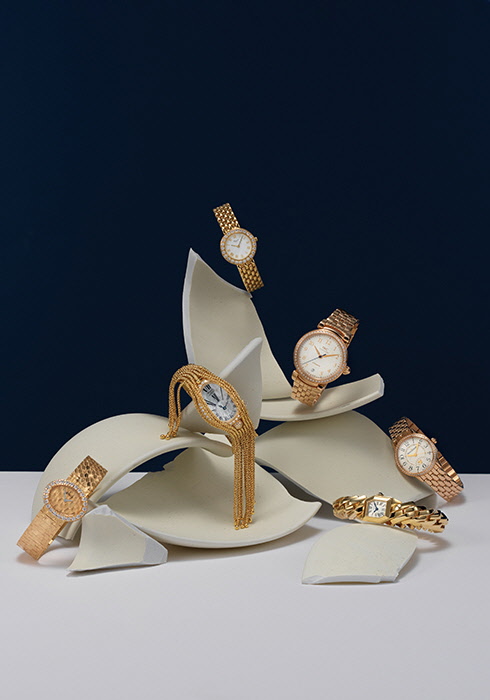유려한 곡선과 매혹적인 골드빛이 그리는 로맨틱 타임피스.