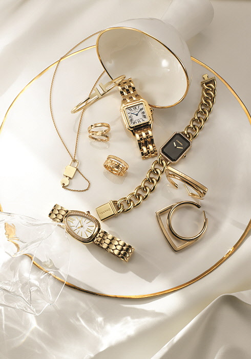 옐로 골드 주얼리와 브레이슬릿 워치의 찬란한 매력.