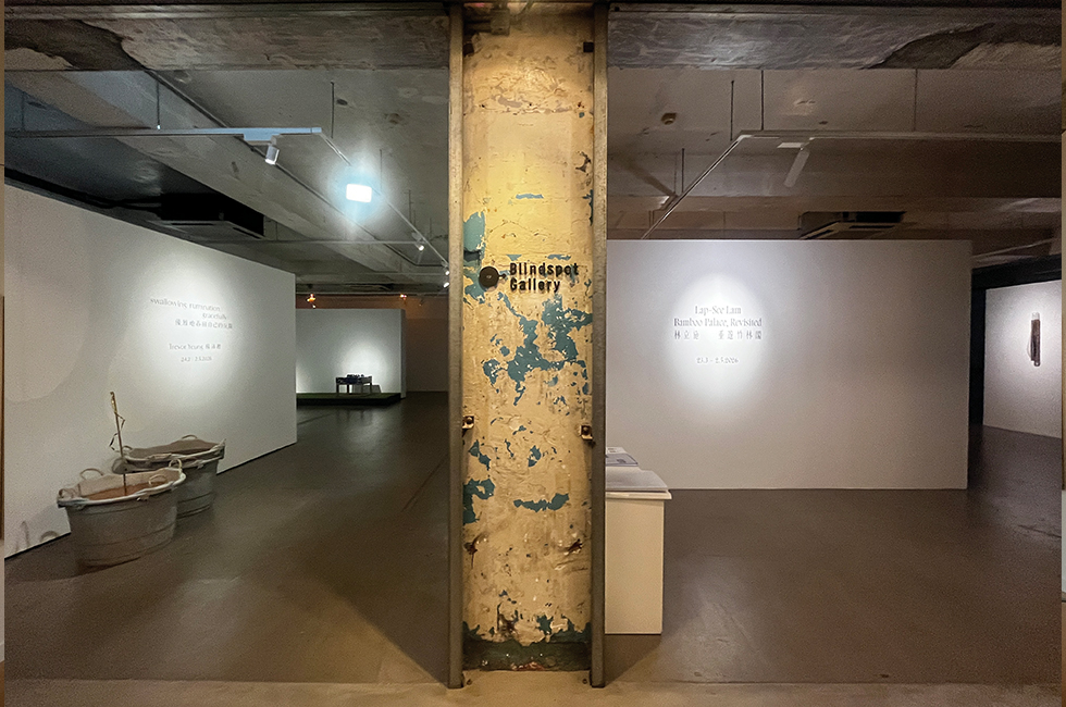 건너편 건물 15층에 자리한 블라인드스폿 갤러리(Blindspot Gallery)는 웡척항 미술 지구에서도 존재감을 발휘하는 홍콩 갤러리다. 홍콩을 대표하는 트레버 영(Trevor Yeung)의 설치와 영상 등을 접할 수 있는 개인전 〈swallowing rumination, gracefully〉, 그리고 스웨덴 출신으로 광둥 디아스포라를 배경으로 하는 작가 랩-시 람(Lap‑See Lam)의 아시아 지역 첫 개인전 〈Bamboo Palace, Revisited〉가 기다리고 있었다. 이 중 두 문화의 경계에서 어디에도 완전히 속하지 못하는 정체성을 상징하는 로 팅(Lo Ting, 인간과 물고기의 혼합 형태)이라는 홍콩의 신화적 존재를 매개로 한 서사를 시각화한 영상 작업 ‘Floating Sea Palace’(2024)가 공간의 지분을 크게 차지하고 있다.