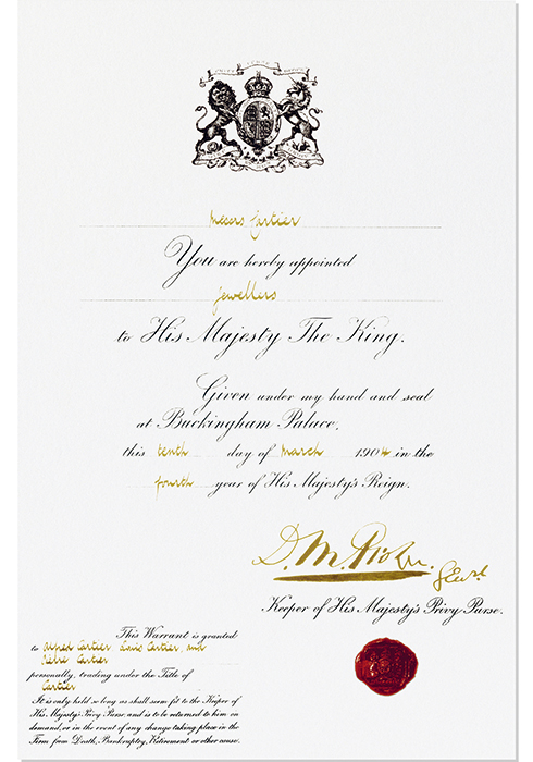 영국 국왕 에드워드 7세(King Edward VII)는 까르띠에를 일찍이 “왕의 보석상, 보석상의 왕(Jeweller to Kings, King of Jewellers)”이라 칭송했고, 1902년 자신의 대관식을 위해 까르띠에에 27개의 티아라를 주문했다. 이듬해 영국 왕실은 까르띠에를 왕실의 공식 주얼러로 임명했고, 곧 러시아, 스페인, 포르투갈, 태국, 이집트 등 세계 각국의 왕실에서도 같은 영예를 부여했다. 또 프랑스 내에서도 까르띠에는 일찍부터 귀족과 황실 주변의 후견을 받았다. 나폴레옹 3세의 황후인 외제니 드 몽티조(Eugénie de Montijo)도 메종의 주요 고객이었으며, 우아한 디자인과 정교한 세공을 갖춘 작품들이 당시 파리 사교계와 상류층 사이에서 큰 인기를 끌었다. 이처럼 프랑스 사교계의 지지를 등에 업은 까르띠에는 황실이라는 공식 의전 무대뿐만 아니라 고급 사교 공간에서도 문화적 위상을 확보했다.