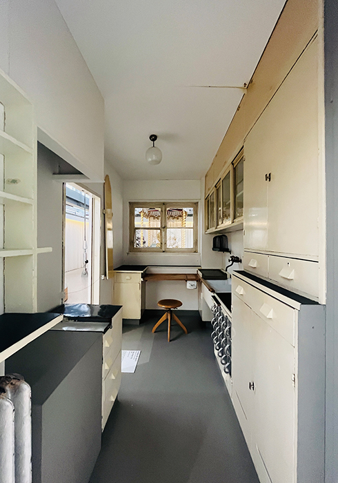 2~4 주방에서의 동선을 최적화하고 노동의 효율성을 높인 ‘시스템 키친의 효시’로 통하는 마가레테 쉬테-리호츠키(Margarete Schu··tte-Lihotzky)의 ‘프랑크푸르트 키친’. HMS 부산에서 열리는 <홈 스토리즈> 전시에서 선보이고 있다.