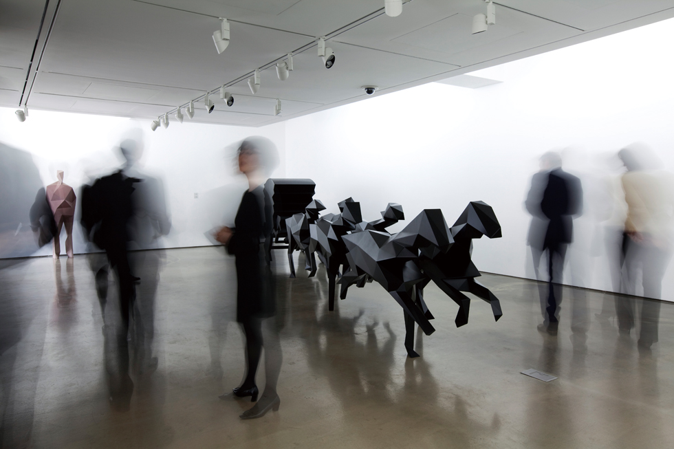 베르사유 궁전의 정원을 길고 높다란 말뚝 위에 서서 바라보고 있는, 전혀 야하지 않은 가녀린 나체의 소녀 조각상. 군더더기라고는 아예 처음부터 한 올도 담으려 하지 않은 듯 단아한 인상이다. 은색이 감도는 이 구릿빛 나체상은 첨단 3D 기술의 도움으로 매끈하게 깎은 표면을 꿰뚫고 진입하면 많은 스토리가 들어 있을 것만 같다. 왠지 슬퍼 보이기까지 한 소녀의 눈동자는 무엇을 말하려고 하는 걸까. 이번엔 강하지 않은 듯 하면서도 은근히 강한, 미묘한 느낌을 주는 보라색 다면체로 이뤄진 마차. 아무도 타고 있지는 않지만 용맹스러운 전사들을 가득 태우고 전장으로 질주하는 중세의 전차를 연상케 하는 역동적인 작품이다. 그 배경에는 마치 음악이라도 깔린 것처럼 달그락, 달그락 하는 말발굽 소리가 들리는 듯하다. 이는 현재 프랑스의 현대미술을 대표하는 작가 자비에 베이앙(Xavier Veilhan)이 지난 2009년 파리 인근 베르사유 궁에서 선보인 9점의 작품 중 라 팜 뉘(La Femme Nue)와 르 카로스(Le Carrosse)의 사진을 보고 필자가 떠올린 생각과 이미지다. 그런데 그것이 작가의 의도였냐고 물어보는 건 큰 의미가 없는 듯하다. 파리의 스튜디오에서 마주한 자비에 베이앙은 “누군가 내 작품을 바라볼 때 남들과는 다른 무엇인가를 포착한다고 해도, 그리고 그것이 혹여 작가의 의도를 잘못 이해한 것이라고 해도, 그 역시 실재하는 ‘진짜’일 수 있다”고 강조했다. 그는 이러한 시각의 간극을 오히려 즐기는 눈치다. 그가 최근 한 인터뷰에서 말한 내용도 비슷한 맥락이다. “전 얼마든지 제 작품에 대해 얘기할 수 있습니다. 하지만 가끔씩 제가 옳지 않을 때가 있어요. 제 작업 자체보다 이를 바라보는 사람들의 시각이 더 중요하다고 생각합니다.”