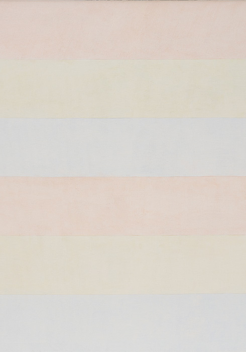 현시대에 시선을 끌기 위한 의도를 품은 자극적이며 독특한 작품은 많지만, 카타르시스와 숭고함을 선사하는 작업을 만나기는 어렵다. 그렇다고 아그네스 마틴의 삶이 작업처럼 밝고 환한 것만은 아니었다. 그녀의 작품 제목에서도 알 수 있듯, 생애 마지막 30여 년 동안 ‘세상을 등지고(나의 세상으로 돌아가, With My Back to the World)’ 오로지 작업에 몰두했다. 그녀는 선불교의 명상을 캔버스 위에 실천하며 직관적인 세계를 펼쳐나갔다. 대부분의 작품은 캔버스 위에 연필로 그려진 선들과 부드러운 색조로 구성된다. 시각적 단순성에 정밀함이 더해져 더욱 순수하게 느껴진다. 얇고 균일한 선들은 캔버스 전체에 걸쳐 격자무늬나 평행선 형태로 배열된다. 그러고 나서 아크릴로 여러 겹 얇게 덧칠되고, 레이어가 쌓이면 쌓일수록 깊이감과 투명성이 더해지며 신비를 자아낸다. 여기서부터 명상적인 품격이 배어 나온다. 하얀색 톤, 회색 톤 혹은 부드러운 파스텔 톤의 사용이 절제되면서도 풍부한 감성을 자아낸다. 주변의 모든 소음을 잠재우고, 외부 세계의 혼란으로부터 안식처를 제공한다.