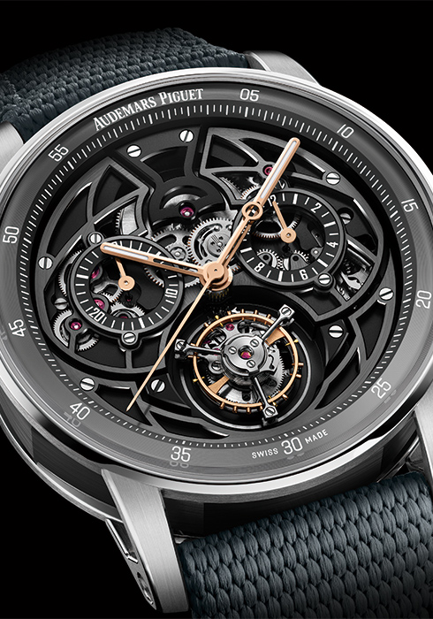 스위스 하이엔드 워치 메종 오데마 피게(Audemars Piguet)가 2020년 론칭한 코드 11.59 바이 오데마 피게 셀프와인딩 플라잉 투르비용 크로노그래프의 새로운 버전을 선보인다. 화이트 골드 케이스에 다크 블루 컬러 악센트를 더한 전작과 달리 이번 제품은 은은한 그레이 색조와 블랙을 조화롭게 조합해 완성했다. 여기에 유광 연마 처리한 핑크 골드 핸드를 매치해 가독성을 높이고 골드의 은은한 광채로 고급스러움을 더했다. 케이스 지름 41mm로 제공하며 오데마 피게만의 노하우로 특별한 공정을 거친 세라믹 소재를 사용해 높은 내구성을 자랑한다. 플라잉 투르비용과 크로노그래프 기능을 함께 갖춘 이 복잡하고도 매력적인 워치는 칼리버 2952로 작동하며 지난 8월 공식 오픈한 한국 최초의 플래그십에서 곧 만나볼 수 있다. 문의 02-543-2999