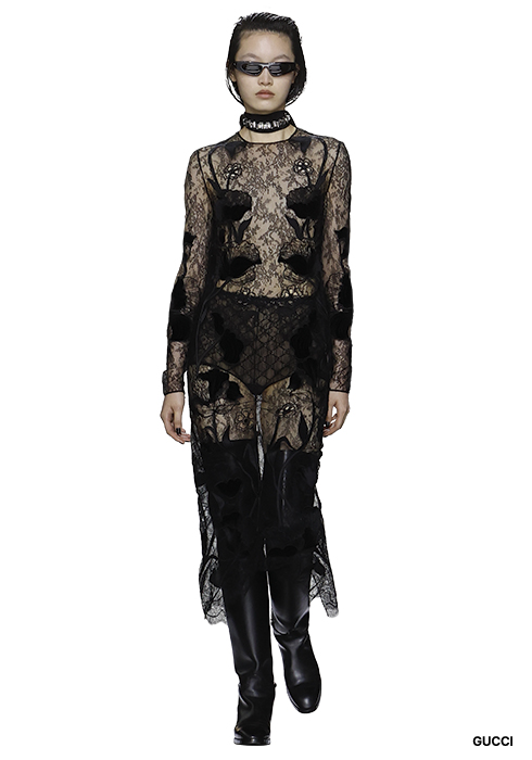이번 시즌 란제리의 섬세하고 우아한 감성과 사랑에 빠진 디자이너가 많은 듯하다. 전반적으로 섬세한 자수와 매혹적인 디자인을 적용한 룩을 대거 선보인 돌체앤가바나부터 화려한 레이스 다자인에 위트 있는 디테일을 더한 모스키노까지. 하지만 고유의 여리여리한 느낌보다는 우아하고 당당한 여성을 대변하는 데 집중한 듯하다. 구찌의 사바토 데 사르노는 란제리에서 영감받은 레이스 브래지어와 시스루 캐미솔, 벨벳 드레스를 통해 1990년대 톰 포드의 섹시하고 자신감 넘치는 여성을 오마주해, 그가 추구하는 새로운 구찌 여성상을 엿볼 수 있었다.