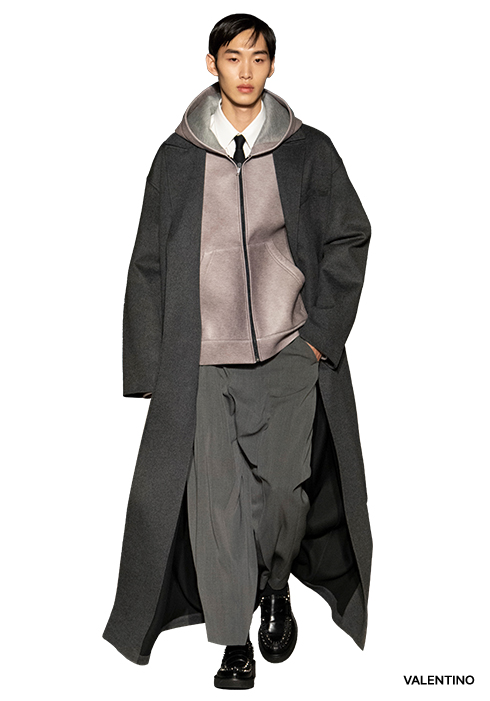 포스트엔데믹 시대를 맞이해 심플한 스타일에 대한 갈망이 싹트고 있다. 단정하고 군더더기 없는 실루엣을 강조하고, 컬러까지 그레이·블랙·네이비 정도로 한정했다. 막스마라 쇼에서는 깔끔하게 떨어지는 롱 블랙 코트를 오프닝 룩으로 채택했으며, 핑크와 레드 등 강렬한 컬러가 시그너처로 자리 잡은 발렌티노의 쇼에도 블랙 컬러 룩이 대거 등장했다. 이번 가을, 조금 더 시크한 모습을 강조하고 싶다면 하이퍼 모더니즘 스타일링을 시도할 것.