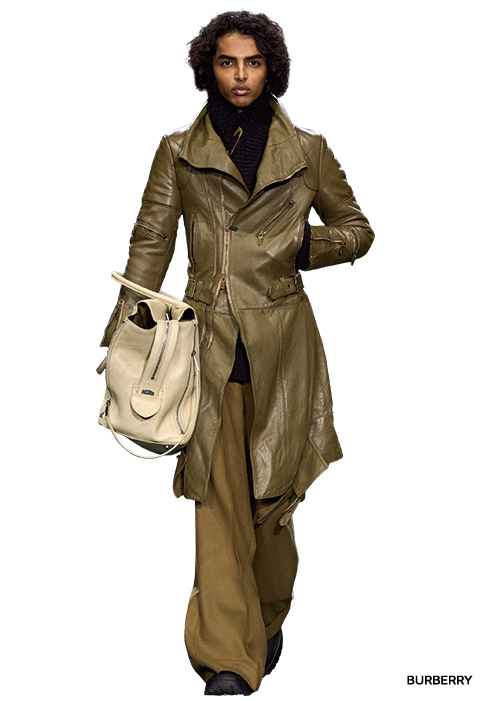 작년 런웨이를 점령했던 강렬한 레드 컬러와 대조적으로 올해는 차분하고 단정한 무드의 카키 컬러가 빅 패션 하우스의 런웨이를 물들였다. 무릎까지 내려오는 카키 컬러의 레더 재킷에 톤온톤 팬츠를 매치해 모던하면서도 영국 스트리트 문화에서 비롯된 펑키한 분위기를 전개한 버버리, 깨끗한 셔츠에 상·하의 모두 카키 컬러로 물들인 올 카키 룩을 선보이며 단정하고 미래지향적인 분위기를 자랑한 발리 등 많은 브랜드에서 선보인 카키 룩은 스타일링에 따라 제각기 다른 색으로 보일 만큼 다채로운 매력을 선사했다.