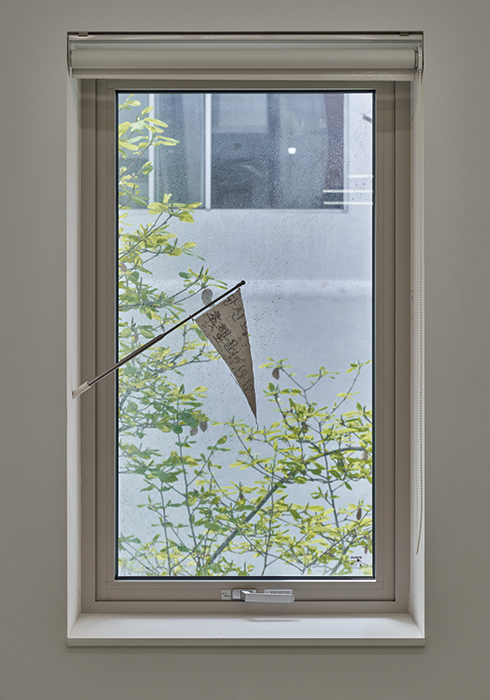 1 ‘당신의 초행을 염원할 표지’. 광목천에 먹, 호분, 2025.
