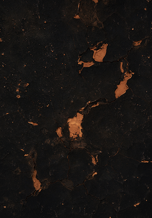 1 ‘출현(L’avènement)’, 130.3×162.2cm, 마대에 흙과 숯, 2024.