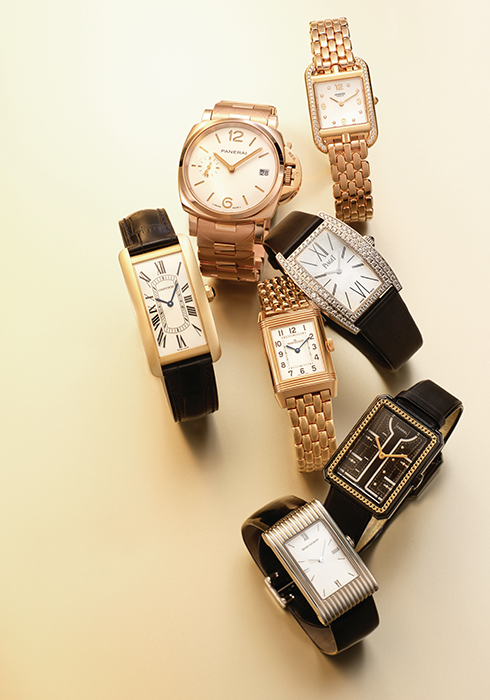 34.2×21mm 사이즈의 네모난 핑크 골드 케이스에 같은 소재의 브레이슬릿을 매치해 주얼리 워치 같은 품격을 전하며 앞·뒷면에 다른 다이얼을 채택해 무드나 룩에 따라 원하는 방식으로 매치 가능하다. 특히 뒷면의 우아한 블랙 다이얼에는 다이아몬드를 위아래 두 줄로 세팅해 더 매력적이다. 5천4백50만원대. 문의 1877-4201