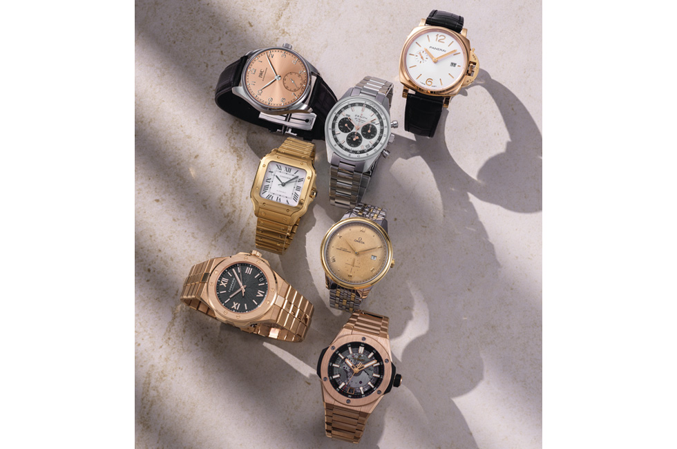 고급스러운 골드 케이스와 화이트 다이얼의 조화가 돋보이는 루미노르두에 골드테크™. P.900 칼리버로 구동한다. 2천8백만원 파네라이 1670-1936.