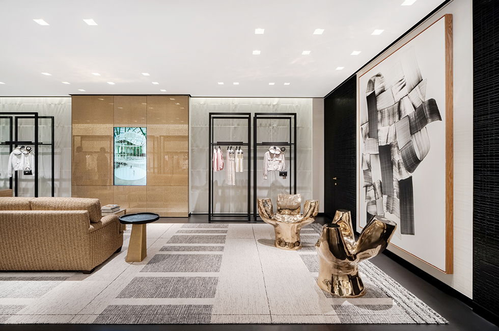 두 층에 걸쳐 핸드백과 액세서리 컬렉션이 펼쳐지는데, 1층에는 층고 높은 갤러리 스타일로 설계된 살롱이 자연스럽게 이어지며 시선을 사로잡는 조화로운 흐름을 형성한다. 맞춤형 캐비닛에는 샤넬의 아이코닉한 백과 함께 신제품 샤넬 25 핸드백을 비롯한 시즌별 신제품이 자리한다. 2층에는 서로 연결된 공간과 편안한 소파가 마련된 여러 개의 피팅 룸과 함께 레디-투-웨어 컬렉션이 자리한다.