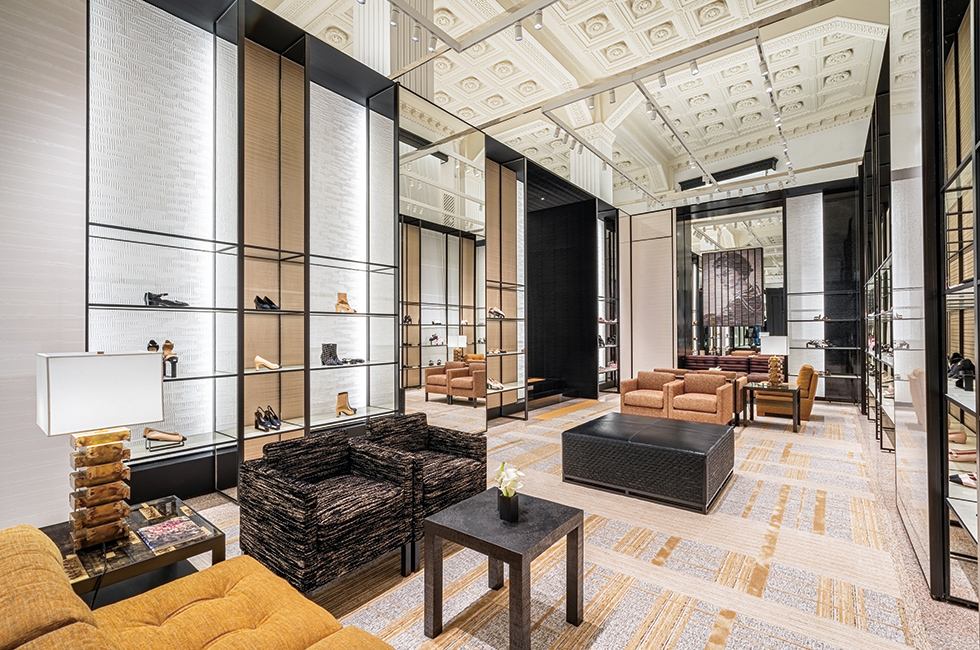 2 아이코닉한 백과 신제품 핸드백 등 액세서리가 있는 공간으로 우아하고 정교한 몰딩으로 완성한 높은 천장이 인상적이다.