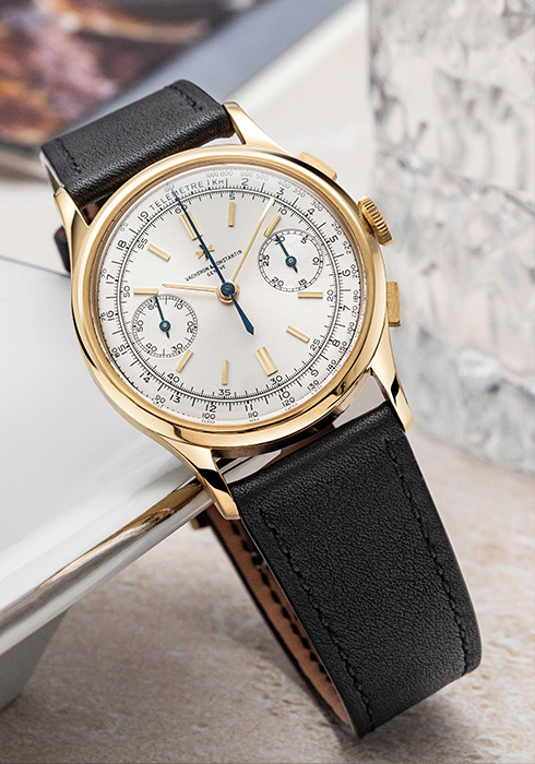바쉐론 콘스탄틴 ‘레 컬렉셔너(Les Collectionneurs)’는 빈티지 타임피스를 수급해 판매하는 서비스다. 메종은 내부 헤리티지 전문가를 통해 무브먼트의 부품 하나까지 까다로운 확인을 거쳐 선정하며 빈티지 전문 워치메이커가 완벽하게 복원한다. 그 때문에 레 컬렉셔너를 구매하는 것은 단순히 시계를 소유하는 것이 아닌 메종의 역사와 유산의 중요한 일부를 소장하게 되는 것이다. 올해 소개하는 레 컬렉셔너 피스는 1949년에 제작되어 크로노그래프를 탑재했으며, 18K 핑크 골드 포인트의 바통형 핸즈의 우아한 조화가 돋보인다. 이 귀한 빈티지 타임피스는 한국 시계 애호가들을 위해 올해 10월까지 한정된 기간 동안 메종 1755 서울에서 방문 예약을 통해 만나볼 수 있다. 문의 1877-4306