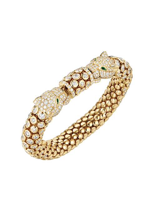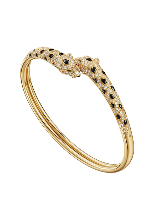 팬더 컬렉션은 변화와 발전을 거듭해왔다. 처음 등장한 이래 자연스러운 모습에서 조각적이고 추상적인 형태에 이르기까지 수없이 많은 형태로 변모하며 진화해온 것. 현대에 와서 팬더의 모습은 더욱 다양해졌다. 본래의 야생적 이미지에서 때로는 사랑스럽거나 장난스러운 팔색조 매력을 더하며 강렬하고 긍정적인 에너지를 발산한다. 팬더의 정교한 디자인 요소는 그대로 갖춘 채 이외의 요소를 모두 덜어내 뛰어난 착용감과 심플한 매력을 강조한 팬더 드 까르띠에 주얼리도 만나볼 수 있다. 이번에도 팬더 드 까르띠에는 다양한 형태와 모습으로 재탄생했다. 때로는 두 마리의 팬더가 등장해 볼륨감을 더하고, 팬더끼리 교감하는 모습으로 강렬한 생명력과 생동감을 부여하기도 한다. 날카로운 눈빛과 섬세한 표정이 돋보이는 두 마리 팬더는 토크 네크리스, 뱅글 브레이슬릿, 링 등 다양한 형태의 주얼리로 재탄생했다. 마디 구조를 갖춘 목걸이와 팔찌의 움직임은 서로 다른 2개의 부품을 2개의 골드 브레이드로 교차시키고, 팬더 머리 안에 위치한 2개의 스프링을 연결해 만들어냈다. 이 때문에 착용감이 우수하고 유연하다.