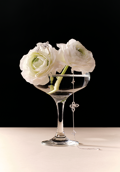 (위부터) 아름다운 나비의 실루엣을 생동감 있게 표현한 화이트 골드 소재의 그라프 버터플라이 실루엣 컬렉션 더블 파베 다이아몬드 링 1천1백62만원, 마치 나비 세 마리가 나는 듯한 모습을 표현한 그라프 버터플라이 실루엣 컬렉션 파베 다이아몬드 브레이슬릿 1천3백74만원 모두 그라프. 문의 02-2150-2320