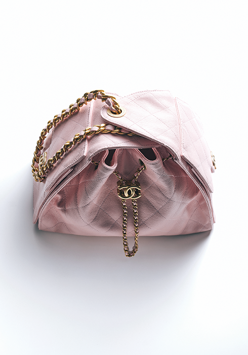 2025 S/S 컬렉션 백으로 연한 핑크 컬러의 그레인드 카프 스킨 소재에 골드 톤 메탈을 매치해 우아하고 여성스러운 감성을 부여하는 샤넬 25 스몰 호보 백 가격 미정 샤넬. 문의 080-805-9628