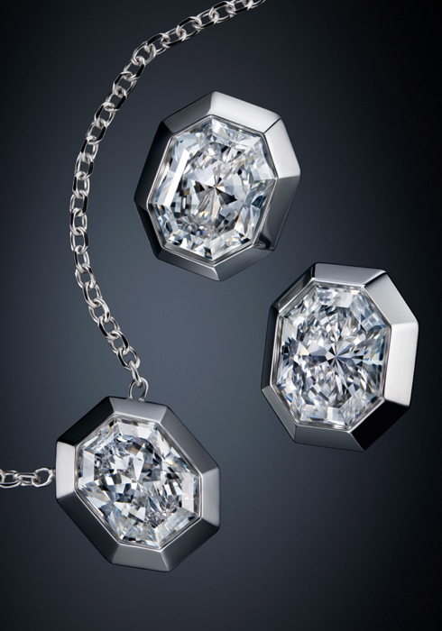 스와로브스키를 상징하는 팔각 셰이프에서 영감받아 탄생한 ‘옥타곤(The Octagon) 컬렉션’은 부드럽고 길게 뻗은 형태에서 대담하고 절제된, 신비로운 양가적 아름다움을 드러낸다. 이는 브랜드 헤리티지와 보석을 향한 장인 정신, 그리고 빛에 대한 독보적 노하우를 조명한다. 팔각형으로 커팅한 다이아몬드는 다각도로 반짝이는 57면의 커팅으로 이루어져 있으며 빛을 받아들이는 크라운에는 스텝 컷을, 빛을 반사하는 파빌리온에는 프린세스 컷 기법을 적용·결합해 여느 다이아몬드와 차원이 다른 찬연한 빛을 선사한다.
