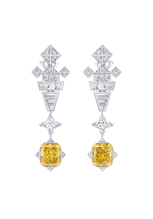 7 좌우 각각 5.05캐럿, 5.07캐럿 옐로 다이아몬드를 세팅한 ‘빅투아르’ 펜던트 드롭 이어링.