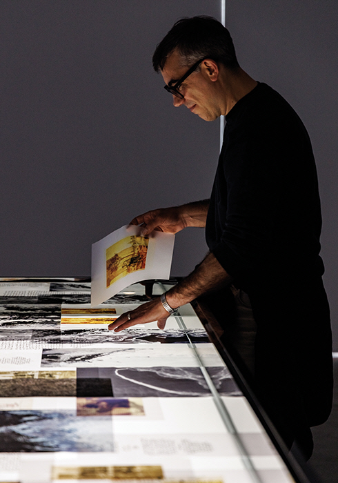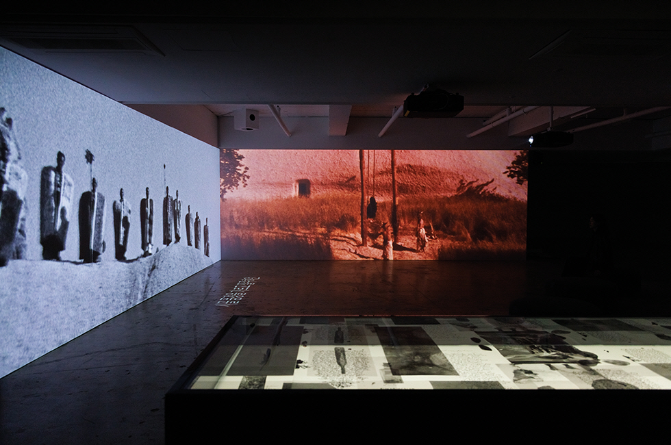 2 피에르 파올로 파솔리니 감독의 영화 〈메데이아〉를 차용한 ‘메데이아’와 이탈리아 영화감독이자 시인, 사상가였던 피에르 파올로 파솔리니의 생애를 재구성한 작품인 ‘파솔리니’, 라이트 테이블로 구성된 전시장.