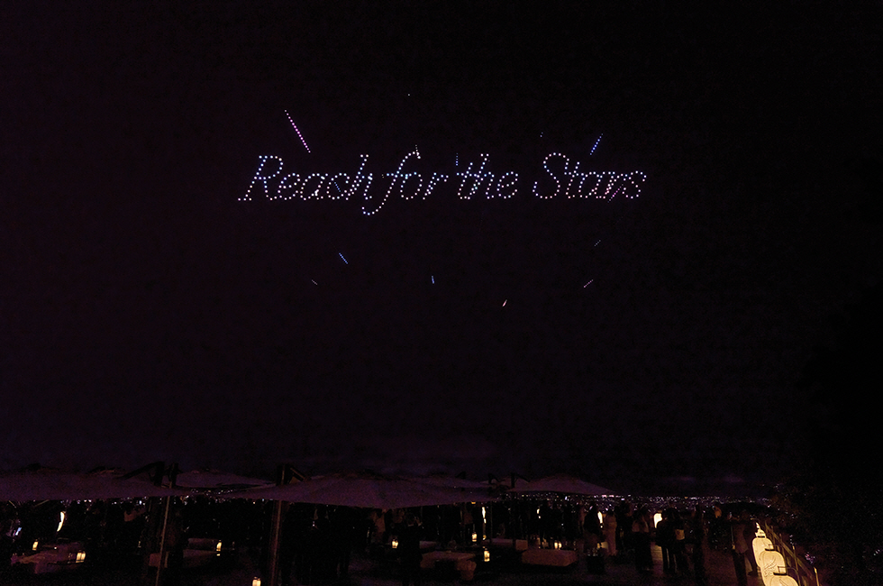 마법처럼 다시 태어난 이 세 가지 모티브의 하이 주얼리 컬렉션은 보는 순간 숨이 멎게 만드는 아찔한 아름다움으로 많은 이들을 사로잡았다. 풍성한 젬스톤, 초커, 오픈 네크리스, 비트윈 더 핑거 링, 큼직한 날개 형상의 브로치, 비대칭 이어 펜던트, 커프, 티아라까지 풍성한 볼륨감, 대담함과 우아함, 자유로움을 담아낸 주얼리 세트는 샤넬이 진정한 주얼러임을 보여준다. 마치 밤하늘에 별이 흩뿌려져 있는 듯한 다이아몬드 네크리스, 오닉스, 오팔, 문스톤 등의 젬스톤을 적절하게 매치한 신비로운 느낌의 컬렉션, 좀처럼 보기 힘든 수십 캐럿의 희귀한 원석 주얼리 등 전시회 자체가 드라마틱함으로 가득 차 있었다. 교토를 방문한 글로벌 저널리스트와 셀럽이 함께한 갈라 디너 행사는 교토의 가장 높은 곳에 있는 전통적인 사찰에서 열렸다. 교토 시내가 한눈에 보이는 곳에서 수백 대의 드론이 샤넬 하이 주얼리 컬렉션을 오마주하며 밤하늘을 다양한 메시지와 형상으로 빛나게 했으며, 이어진 인상적인 전통 공연과 화려한 테이블에서의 디너로 샤넬과 교토의 아름다운 밤이 마무리되었다.