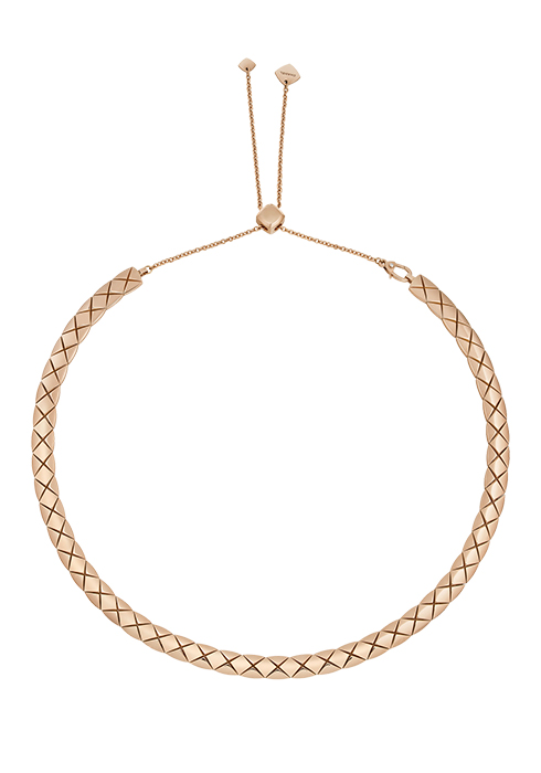 코코 크러쉬는 가브리엘 샤넬이 애호했던 입체적인 퀼팅 모티브를 주얼리로 구현해 풍성한 실루엣이 특징인 컬렉션이다. 2015년 이후 오늘날까지 샤넬 파인 주얼리를 상징하는 아이콘으로 자리 잡았다. 이번 시즌 그 미학을 가장 잘 담아낸 신제품, 코코 크러쉬 쇼트 네크리스는 또렷한 라인과 절제된 곡선을 통해 코코 크러쉬 특유의 정체성을 선명하게 드러낸다. 슬라이딩 잠금장치를 활용해 초커 스타일로 연출할 수 있으며, 느슨하게 착용하면 롱 네크리스로도 활용 가능해 우아함을 더한다. 베이지 골드, 옐로 골드, 다이아몬드를 세팅한 화이트 골드 버전 등 다양한 소재로 선보인다.