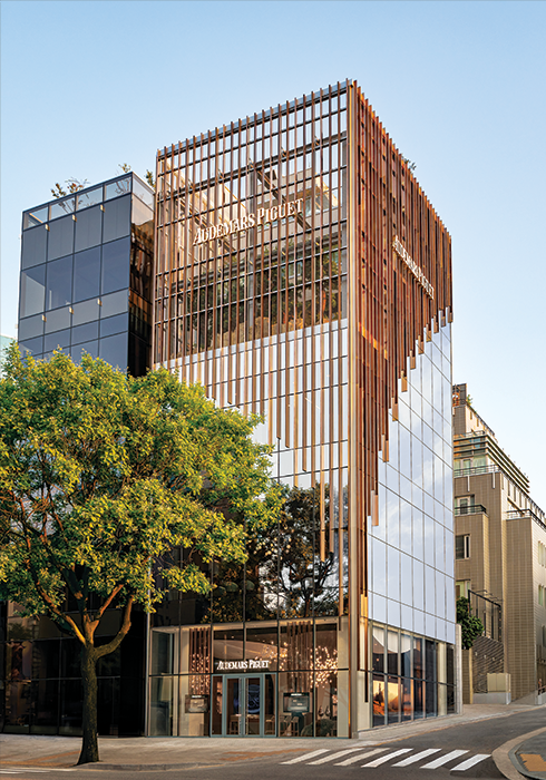 드디어 서울에도 오데마 피게의 첫 플래그십 스토어가 오픈한다. 암스테르담, 방콕, 바르셀로나, 홍콩, 런던, 로스앤젤레스, 마드리드, 밀라노, 뮌헨, 뉴욕, 상하이, 생바르텔레미, 텔아비브, 도쿄, 취리히에 이어 21번째 스토어다. 무려 940㎡(약 2백84평) 면적에 6층 규모의 건물에는 부티크는 물론 AP 하우스 및 고객 서비스 센터가 자리해 유기적으로 연결된 서비스를 제공하도록 설계되어 있다. 건물 외관은 떨어지는 빗방울을 연상시키는 브론즈 색상의 멀리언(mullion) 구조물로 장식했는데, 이는 오데마 피게의 본고장인 스위스 발레 드 주(Vall´ee de Joux)의 자연 경관에서 영감을 얻었다. 브랜드의 오랜 파트너인 코스타 스타타키스(Kosta Stathakis)가 이끄는 스위스 기반의 블렌드 스튜디오(Blndd. Studio)와의 협업을 통해 완성된 실내 디자인은 오데마 피게 스위스 유산과 한국의 문화 및 서울의 생동감 넘치는 리듬을 엮어 완성했다. 특히 2개 층에 걸쳐 있는 하우스 서울은 플래그십 스토어 중 가장 중요한 부분으로 한국 문화에 내재된 금속, 물, 나무, 불, 흙 등 다섯 가지 원소인 오행을 담아냈다. 또 AP 하우스는 브랜드 창립자 쥘 루이 오데마(Jules Louis Audemars)와 에드워드 오귀스트 피게(Edward Auguste Piguet)가 21세기에 어떻게 세계를 여행하며 아름다운 시계에 대한 열정을 공유할지 상상한 것을 바탕으로 설계했다. 그 결과 집 같은 편안함과 인간관계를 최우선 가치로 삼는 세련된 공간이 탄생한 것. AP 하우스 서울은 고객과 시계 애호가를 오데마 피게의 세계로 초대함과 동시에 다양한 요구를 충족하기 위한 맞춤형 서비스와 경험을 제공하는 환대 및 판매의 개념을 새로운 차원으로 끌어올릴 것이다. 오데마 피게 플래그십 스토어의 그랜드 오프닝은 올해 말 진행될 예정이다. 문의 02-543-2999