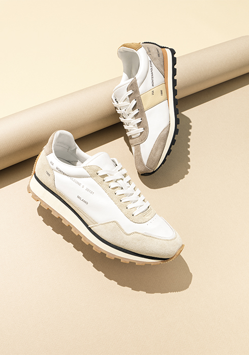 1980년대 육상 경기 아이콘에서 영감을 받았으며, 측면의 상징적인 몬테 나폴레오네 거리 주소 디테일이 특징이다. 유니섹스 디자인으로 출시되어 남녀 커플 스니커즈로 신을 수 있는 스웨이드와 레더 소재의 86er 스니커즈 각각 65만원 모두 호간. |
