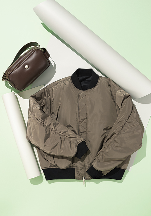 스트랩을 제공해 숄더백으로 착용할 수 있으며, 토트백으로 착용하면 스트리트 무드를 연출할 수 있다. 푹신한 가죽으로 제작한 로고 버튼 디테일의 나파 레더 소재 뱀뱀 숄더백 90만원. 도시적인 감성을 자아내며 뒷면에 몬테 나폴레오네 거리 주소 로고를 프린팅한 나일론 트윌 소재의 유니섹스 리버서블 보머 재킷 1백2만원 모두 호간. |