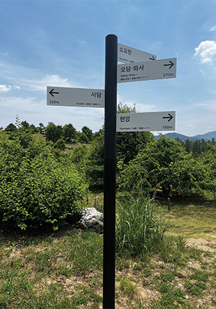 사실 모과나무에 얽힌 에피소드는 35년 전으로 거슬러 올라간다. 1989년 일본으로 밀반출될 운명에 처한 3백 년 된 모과나무가 있다는 소식을 들은 유 회장이 4배에 달하는 웃돈을 들여 네 그루를 처음 사들인 것이 인연의 시작점이다. 현재 약 19,834㎡(6천 평) 부지에 옮긴 108그루의 모과나무가 자태를 뽐내는 아리따운 정원은 사유원의 상징적 존재로 자리 잡았다. 각 모과나무에는 구입한 날짜와 장소, 판매자를 기록한 현판이 붙어 있어, 이 모과나무들이 사유원에 어떻게 뿌리를 내렸는지 알 수 있다. 풍설기천년 말고도 배롱나무 밭인 ‘별유동천’, 느티나무 숲 ‘한유시경’, 매화 언덕 ‘매산첩첩’ 등 다양한 수종이 군집해 있어 저마다의 산책로에 따라 색다른 풍경을 감상할 수 있는 게 사유원의 매력이다.