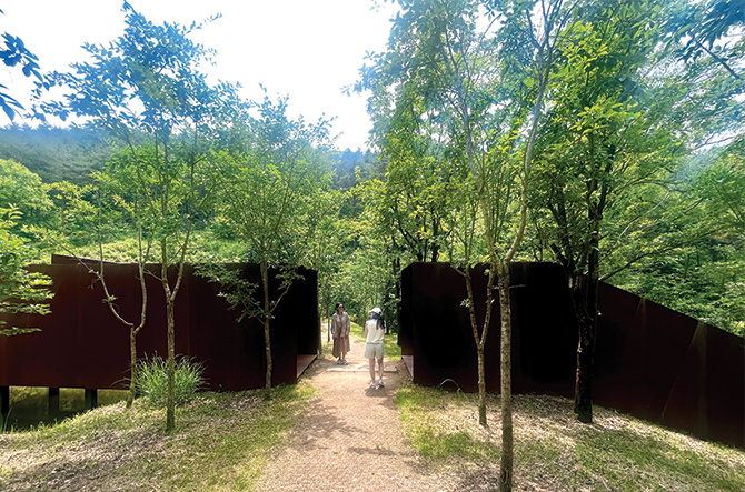8, 9, 10 승효상 건축가가 설계한 와사. ‘명상의 수도원’을 표방하는 이곳은 단단한 코르텐강을 사용했지만 나무를 자르거나 주변 자연을 해치지 않고 그대로 품어냈다.