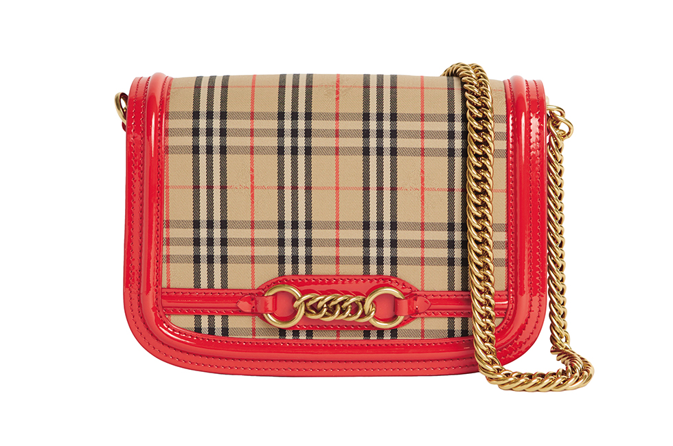 버버리는 페이턴트 트리밍을 더한 ‘1983 체크 링크 백’을 새롭게 선보인다. 버버리 아카이브의 1983 체크 패턴과 앞면의 링크 체인 장식, 그리고 골드 색상의 두꺼운 유광 체인 스트랩이 돋보인다. 특히 백 가장자리에 포인트가 되는 강렬한 색상의 페이턴트 가죽 파이핑 디테일을 가미해 특별함을 더했다. 블루와 레드, 2가지 컬러로 만나볼 수 있다. 문의 080-700-8800