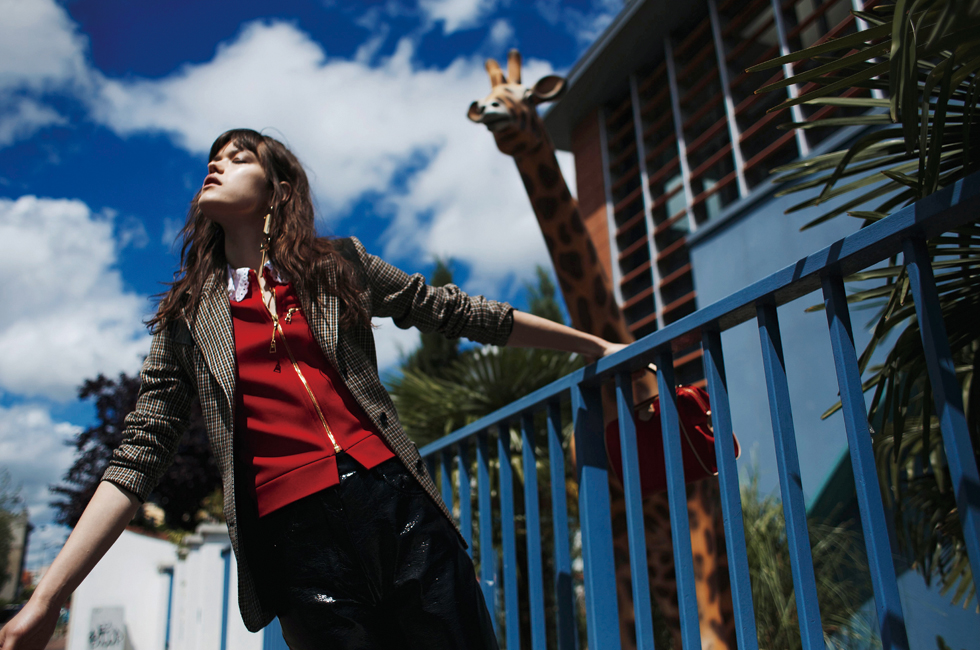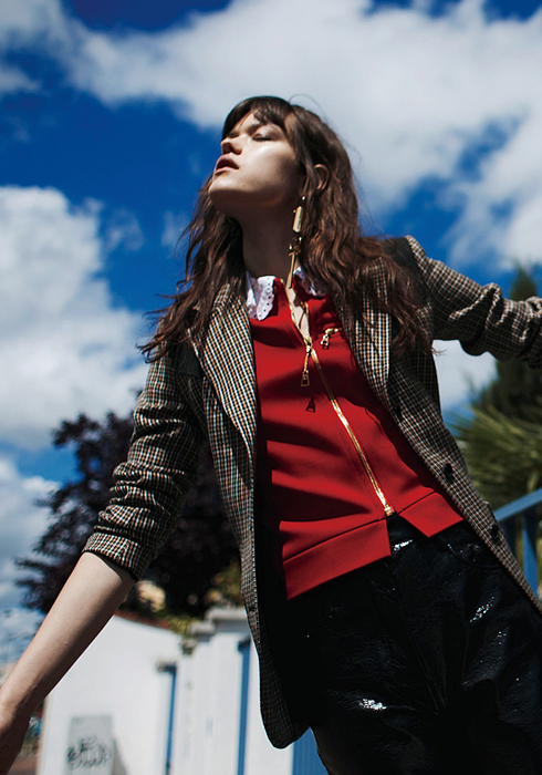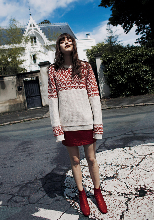 레드 컬러로 산뜻하게 연출한 사랑스러운 소녀. 노르딕 패턴 스웨터 United Colors of Benetton. 레드 컬러 미니스커트 Comeforbreakfast. 앵클부츠 Saint Laurent by Hedi Slimane. |